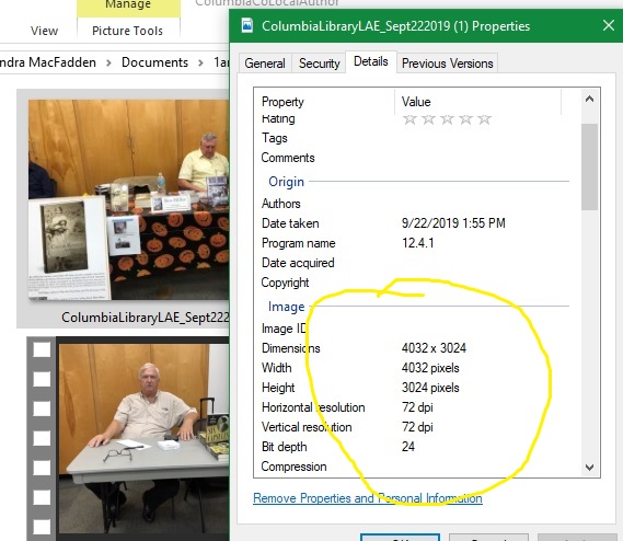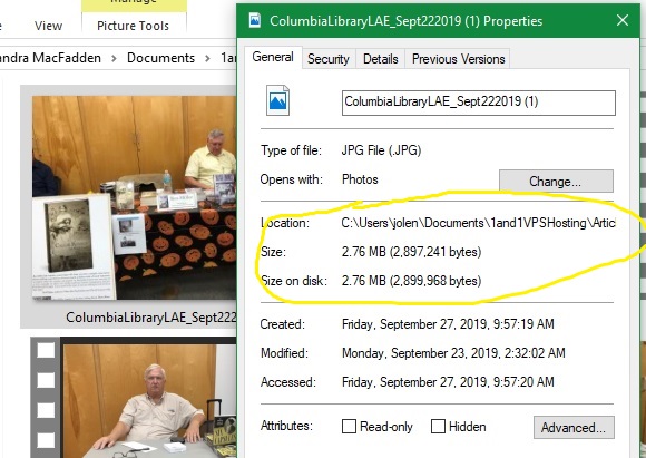 We typed up a mock article and submitted it with a picture. It error out two times because our image settings were too strict. So that has been changed. You can submit a picture as small as 150x150px and as large as 1200x1200px. We ask that each one not be more than 3MB a piece. To find out the size of the pictures you can right click on the name, another box pops up and you click on the word “properties”. You will get the size from the “General” Tab. Click on the “Details” tab and size the size of the picture. We also request that all pictures be save in “.jpeg” or “.jpg” format on the end. Below are samples,